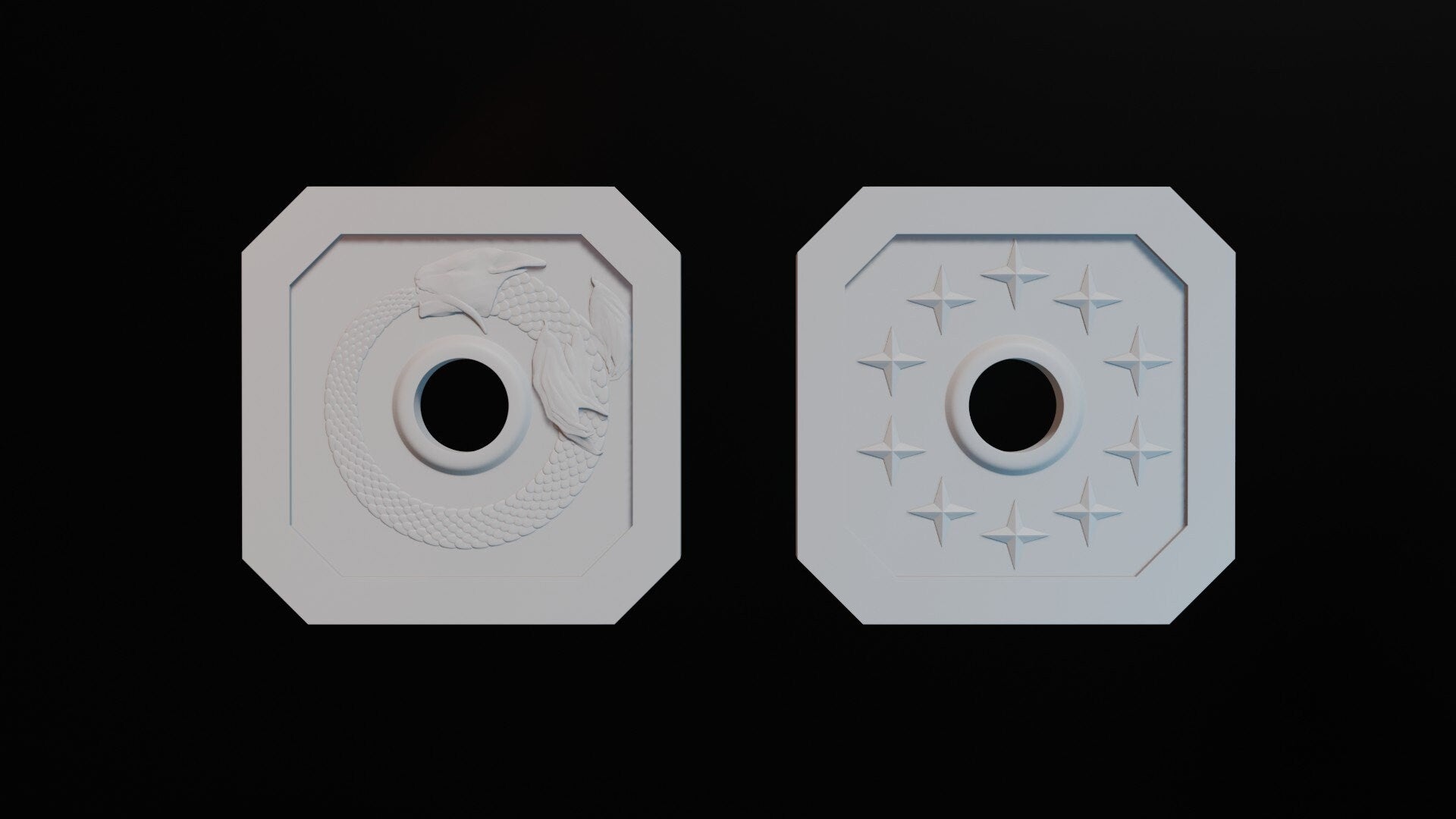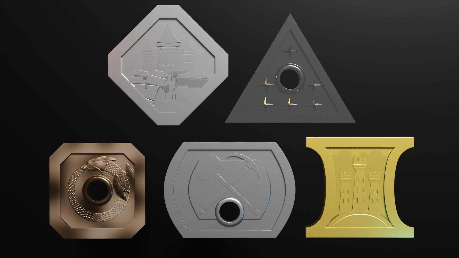 This set includes 1 of each coin, primed in Colour Forge Grey Ghoul primer but otherwise unpainted.