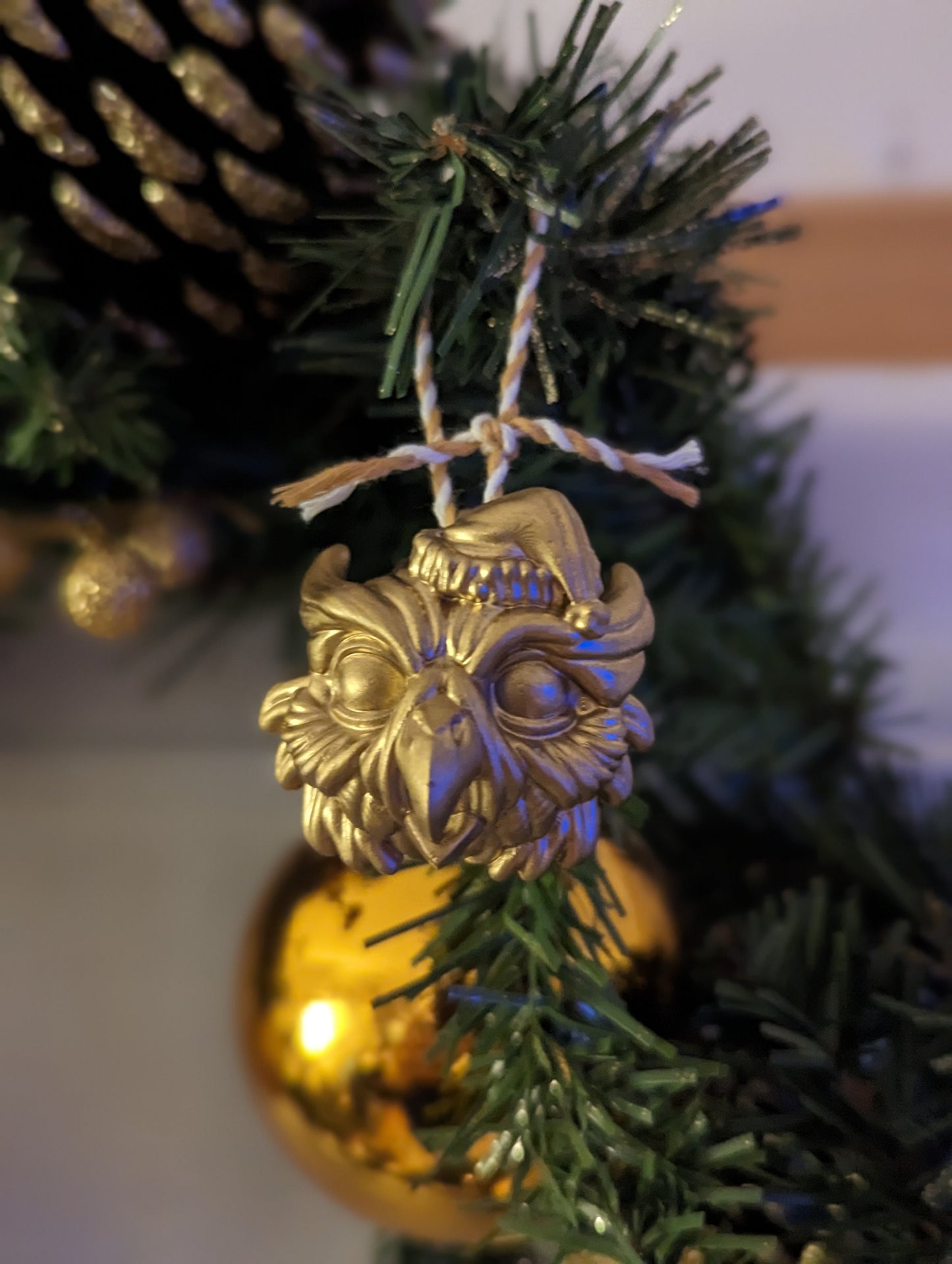 3d printed Owlbear Christmas decoration, perfect for hanging on your Xmas tree!
