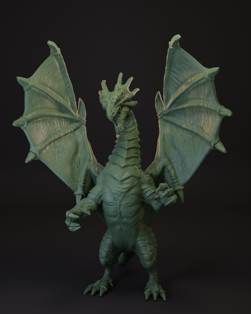 A standing Young Green Dragon with unfurled wings, ready to attack any unlucky adventurers.